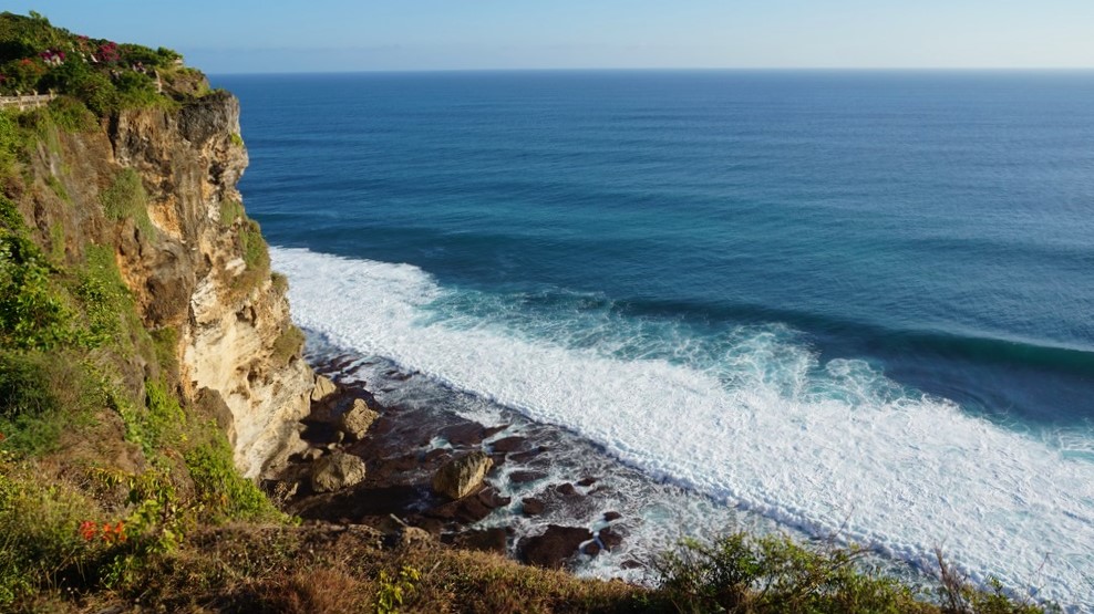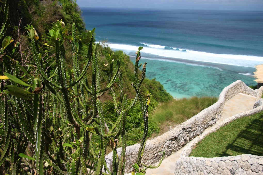 La vue est vertigineuse depuis le temple d'Uluwatu car il a été construit au sommet d'une falaise qui tombe à pic dans l'océan.