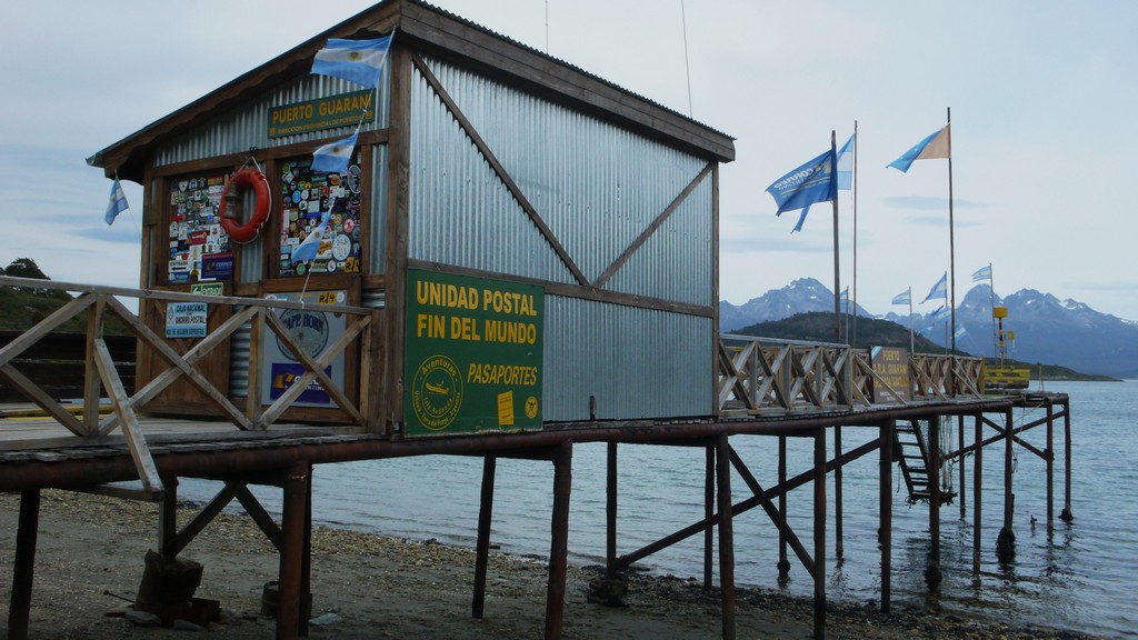 Lieu emblématique du parc national de la Terre de Feu : Le bureau de poste de la Fin du Monde, où vous pouvez envoyer une petite carte postale avec le tampon postal qui se la raconte.