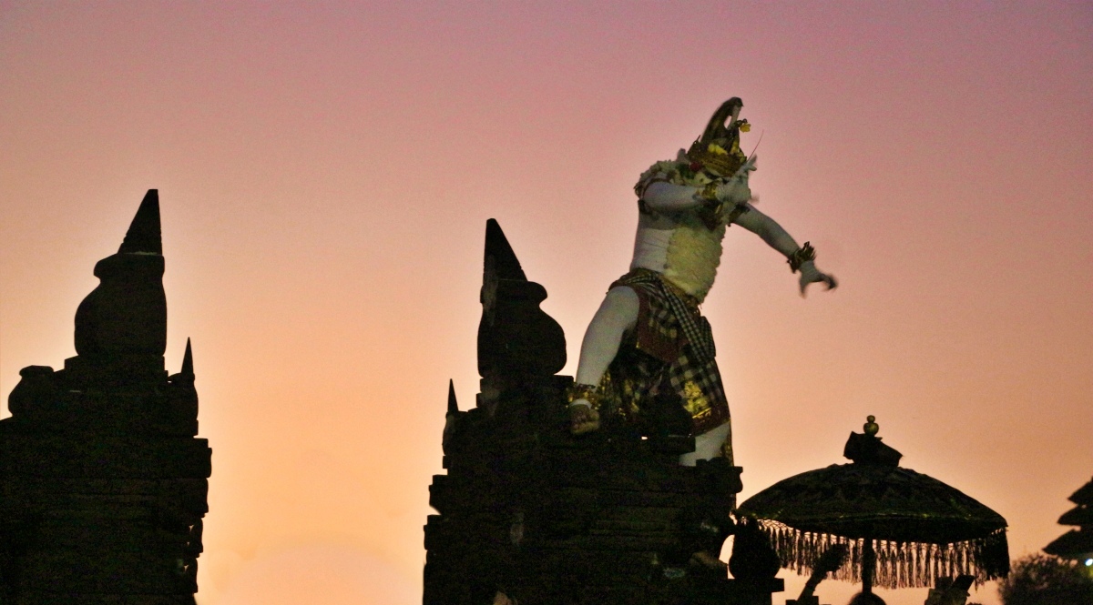 Après cette étape rafraîchissante et relaxante, nous avons filé au Pura Luhur, le célèbre Temple Uluwatu. Nous y sommes allés afin d'assister au spectacle Kecak (extrait de l'histoire du ramayana) qui s'y tient tous les soirs au coucher du soleil, vers 18 heures dans l'amphithéâtre en plein air situé au cœur du temple. Kecak se prononce "Ketchak".