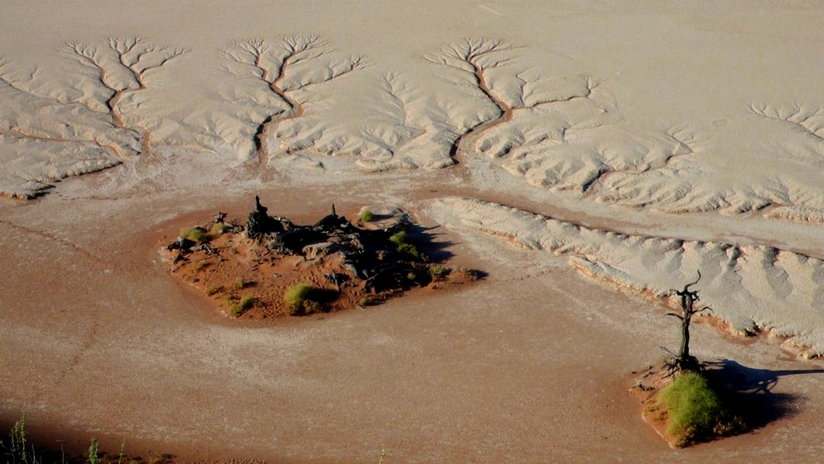 Cette cuvette d'argile blanche au pied des dunes offre une scène hors du temps avec ses arbres centenaires. Son nom signifie "le marais mort". La pureté des "pans" d'un blanc immaculé est entachée par des squelettes d'acacias, privés d'eau depuis 400 ans. En effet, dans cette région qui compte parmi les plus arides de la planète, il ne pleut que quelques fois par siècle et cela dure depuis plusieurs milliers d'années.